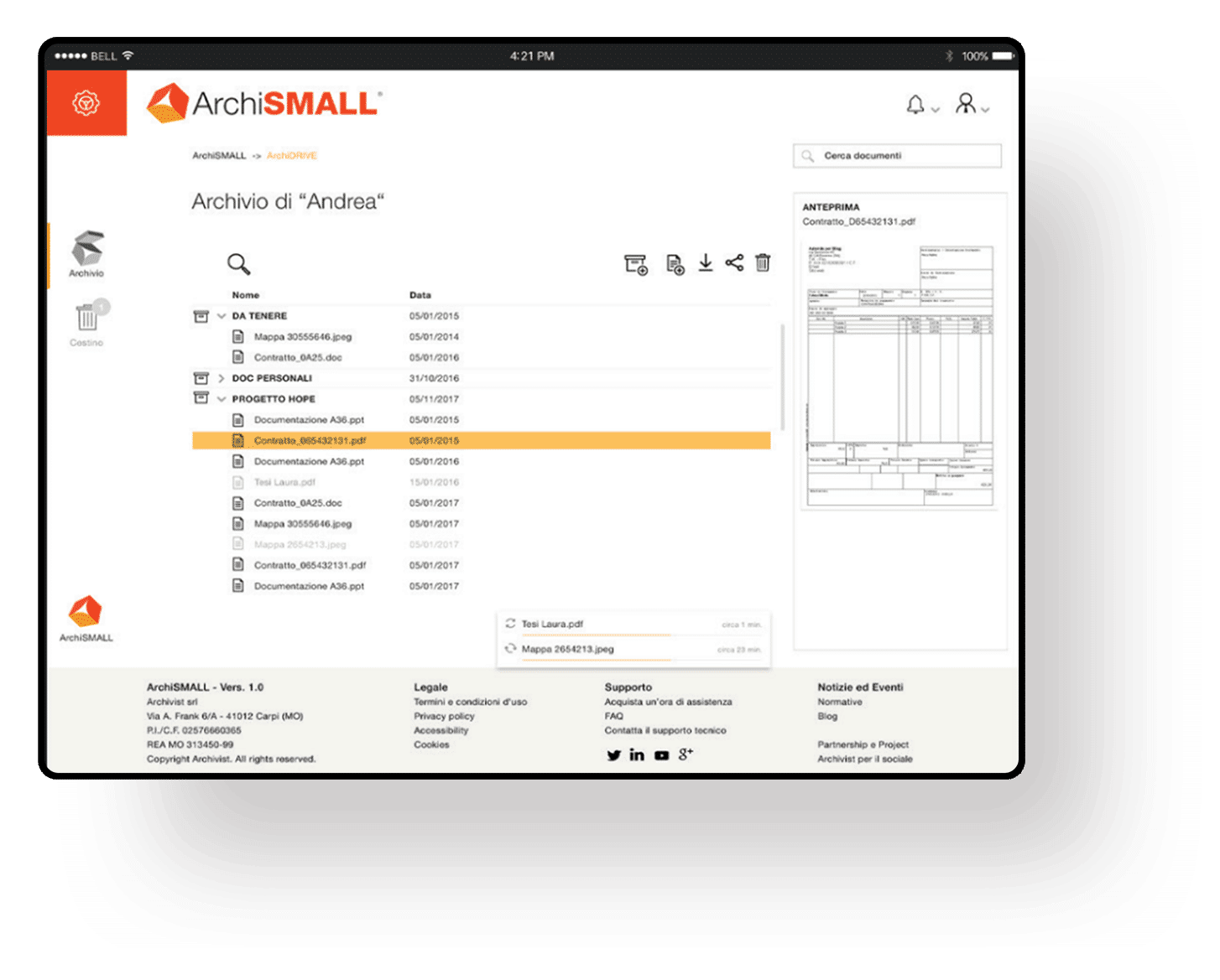 Potrai quindi rendere più efficiente la gestione dei documenti dalla creazione, alla modifica, all’archiviazione, fino alla conservazione a norma.