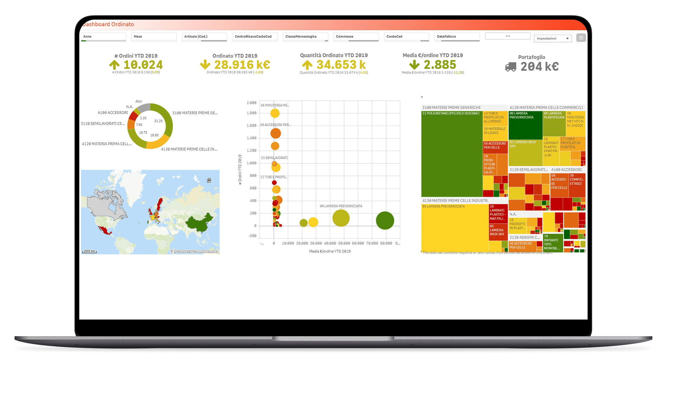 É una soluzione completa per l’analisi e la valutazione dell’area acquisti con una molteplicità di KPI che forniscono informazioni significative sull’andamento degli acquisti dell’azienda, con particolare enfasi sui confronti rispetto a periodi precedenti.