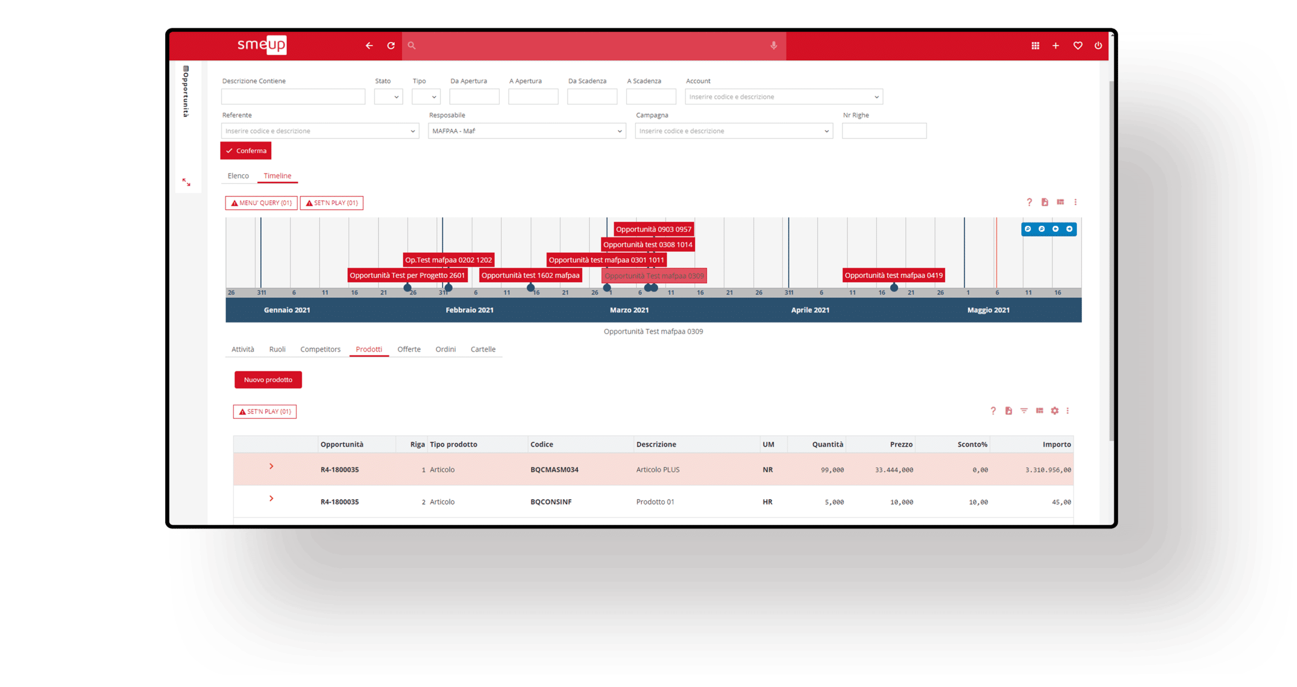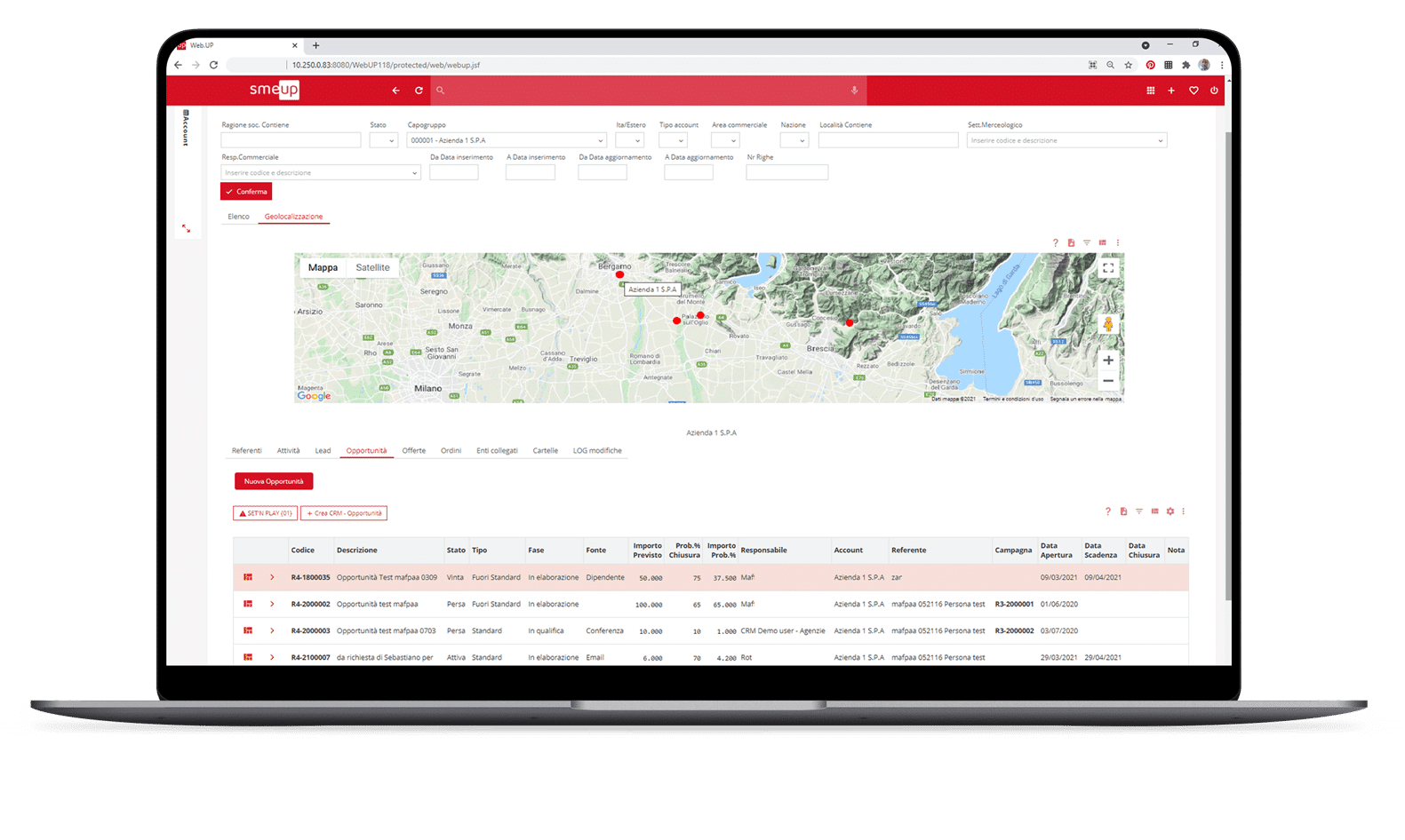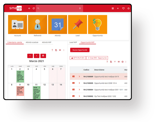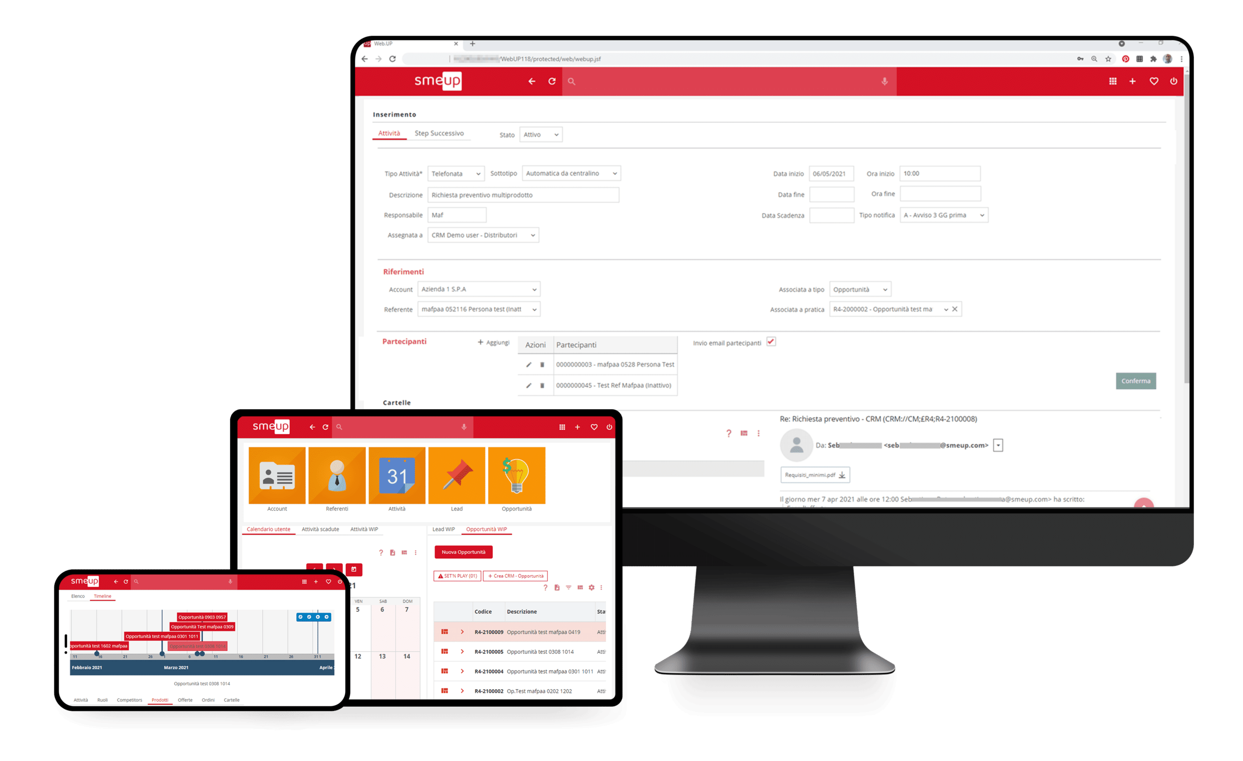 Il Software CRM di smeup permette di gestire le lead, le opportunità commerciali, le attività della forza vendita e molto altro, anche da dispositivi mobile.
