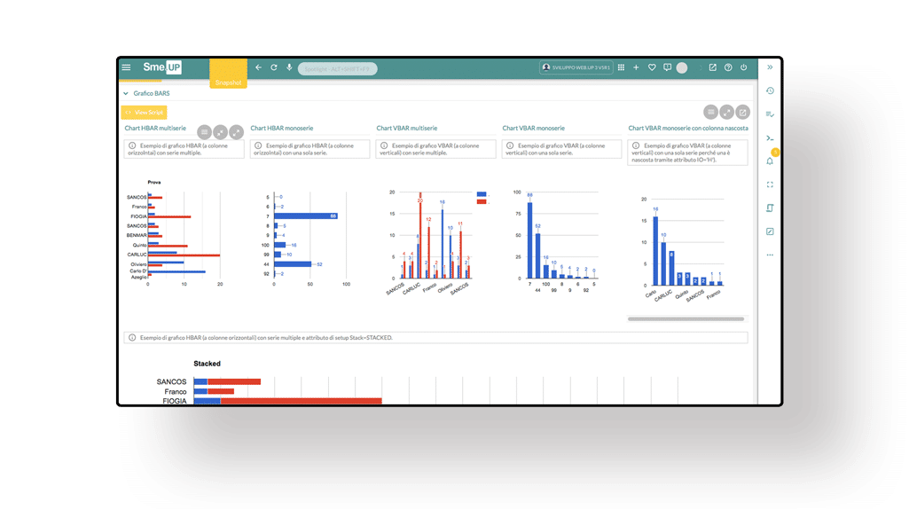 Grazie a smeup il nostro sistema aziendale si sta dotando di una serie di cruscotti che ci permetteranno di controllare l’andamento delle singole aziende che fanno parte del gruppo.