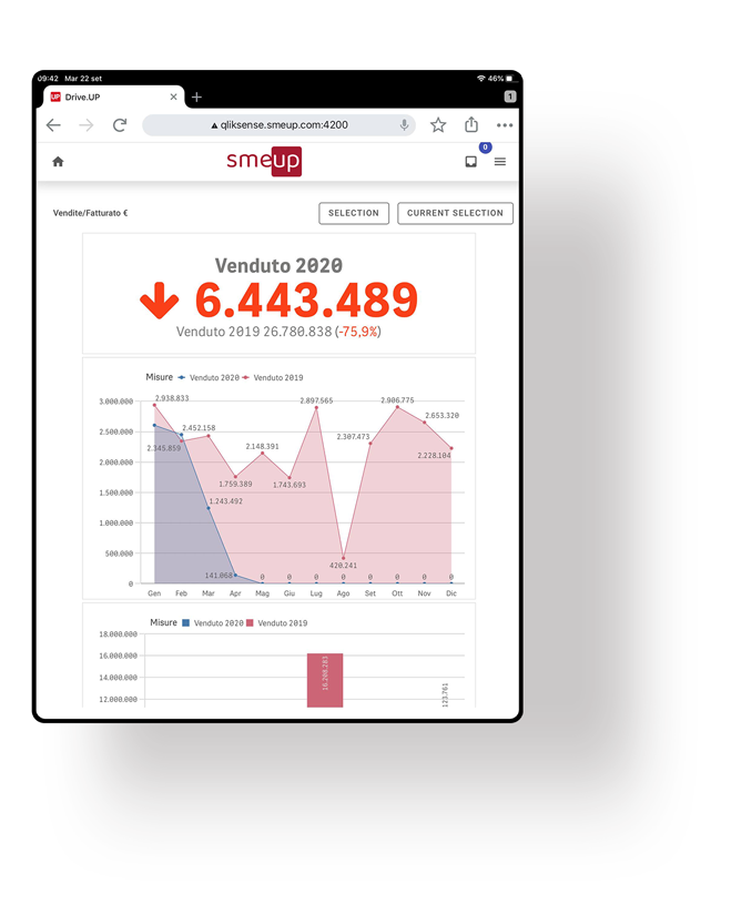drive up è studiata per la fruizione tramite dispositivi mobile, ma è adatta anche all’utilizzo su desktop su cui può essere implementata per disporre di una dashboard direzionale dedicata allo svolgimento di analisi approfondite.